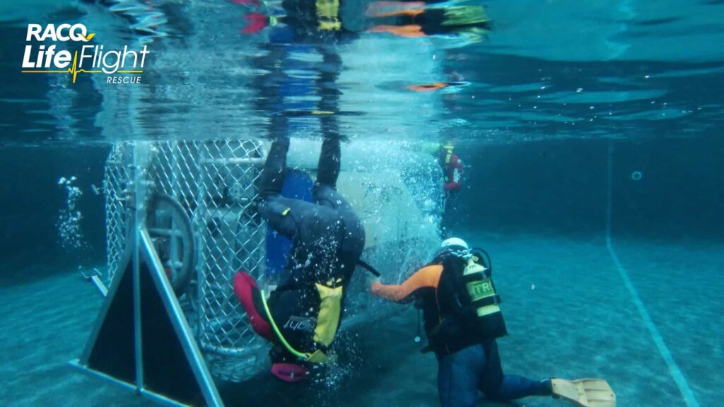 “In the highly unlikely event of a helicopter going into the water, it’s going to roll over and flood with water, these doctors are going to have seconds to locate exits, operate exits and get themselves out, so the training’s developed to give them the skills to be able to do that and to stay orientated,” LifeFlight HUET Manager Mick Dowling said.