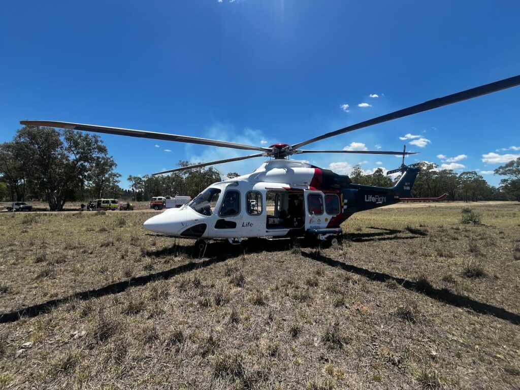 An RACQ LifeFlight Rescue Critical Care Doctor and QAS Flight Paramedic worked to treat the patient for spinal injuries.